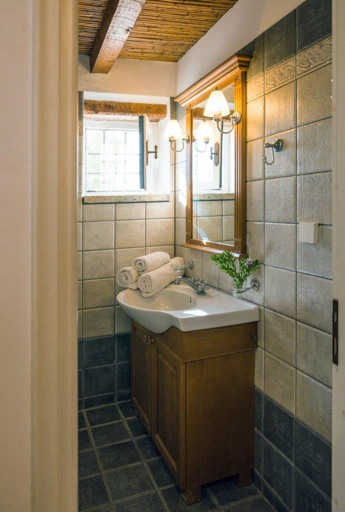 The Cottage Studio is a single, small structure half‑hidden by greenery, with a double bed that seems to invite long mornings under a light cotton cover. Stone and wood surround you gently, the private terrace looks into garden rather than out to sea, and a kitchenette waits for lazy tea or evening wine. AC, Wi‑Fi, ensuite—all there when wanted, silent when not. A retreat within the retreat, for those who prefer leaves to horizons and solitude sweetened by birdsong.